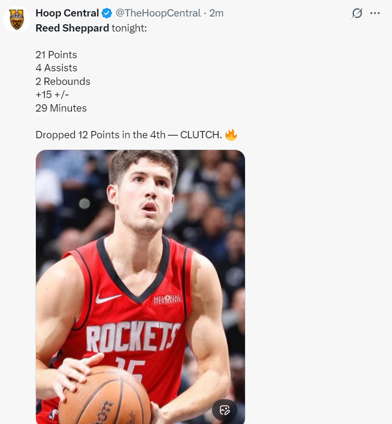 北京时间1月21日,NBA常规赛,火箭111-106逆转马刺拿到三连胜,这场比赛火箭一度落后马刺16分之多,可在末节里德-谢泼德大爆发,加上火箭的防守层级一些提升到Best级只让马刺单节拿到14分,火箭官方也晒出谢泼德末节12分的贡献鼓掌感谢。这场比赛火箭后卫里德-谢泼德登上了全美第三热搜,因为他这场比赛沉寂了三节后在末节最关键的时刻挺身而出,他单节12分帮...